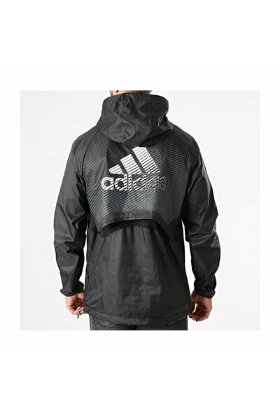 Technische wind snijjack – Adidas. Tonen: Zwarten. Col: Met capuchon. Lange mouwen. Rechte snede. Logo: gedrukt. Pocket: 2. Specificaties: waterbestendig. Sluiten: opzetten, zip. Onderhoud: Wassen van de machine. Tip: neem je gebruikelijke maat. Materiaal: 100% polyester. Grootte: klemverbinding.
