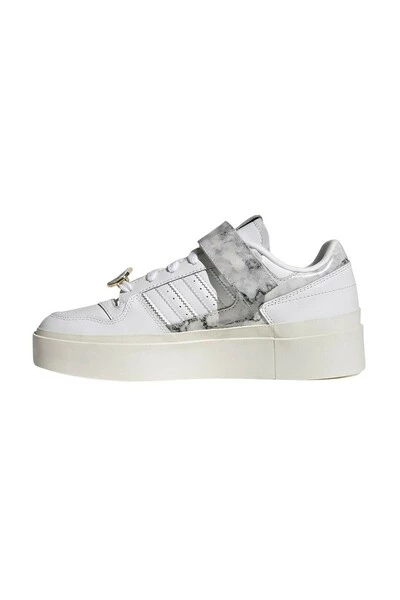 Adidas Forum Bonega -schoen met een bovenleren, marmeren prints en een platformzool die het een moderne stijl geeft. Het bevat gerecycled materiaal van vergeldingen, productieafval en huishoudelijk afval om de milieu -impact te verminderen die het gebruik van maagdelijke materialen met zich meebrengt.