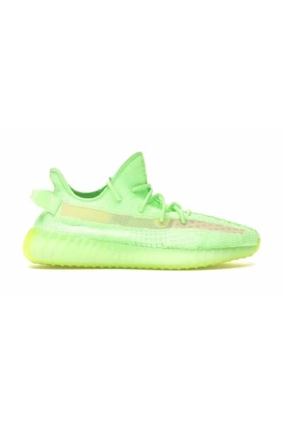 De Yeezy Boost 350 heeft een groen bovenwerk, een groene tussenzool en een groene zool.